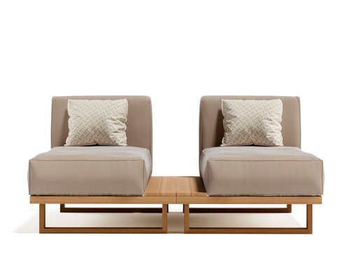 9.zero - это коллекция модульных систем. Легкий в сборке материал этих 9 базовых модулей позволяет реализовать большое количество композиций для удовлетворения различных требований к пространству и функциональности. Конструкции состоят из девяти реек, по девять дюймов каждая, из шлифованного и промасленного индонезийского тикового дерева. Подушки выполнены из быстросохнущего поролона и покрыты тканями из коллекции Atmosphera Outdoor.