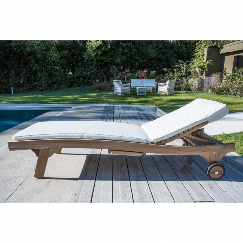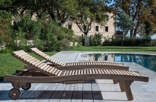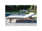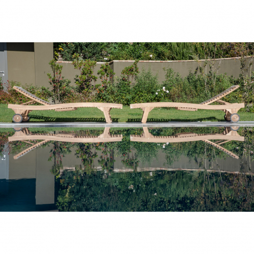 Мягкий изгиб шезлонга Melvin имитирует волну, придавая ему естественный и стильный вид. Шезлонг полностью изготовлен из цельного натурального тикового дерева, которое дополняет любую обстановку на улице, и оснащен двумя колесами, которые обеспечивают легкое перемещение. Спинка имеет четыре различных варианта наклона для максимального комфорта, что делает этот шезлонг идеальным компаньоном для расслабляющего дня.