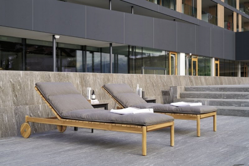 Деревянный шезлонг-лежак Barcode из тика с матрасом с колесами для легкого перемещения. Barcode - коллекция мебели со структурой из CFS сертифицированного тика. Она основана на линейной концепции дизайна, которая смешивает планки разной ширины для создания поверхностей коллекции Barcode, состоящей из разной мебели. Свободно сконфигурированные, хорошо организованные функции позволяют занимать пространство и предлагать решения для важных проектов с единым стилем "haute-design".