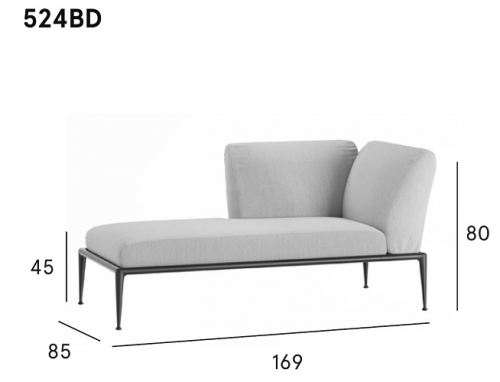 Коллекция New Joint включает в себя: модульный 2/3-местный диван, кресло, журнальные столики и левые или правые лежаки.