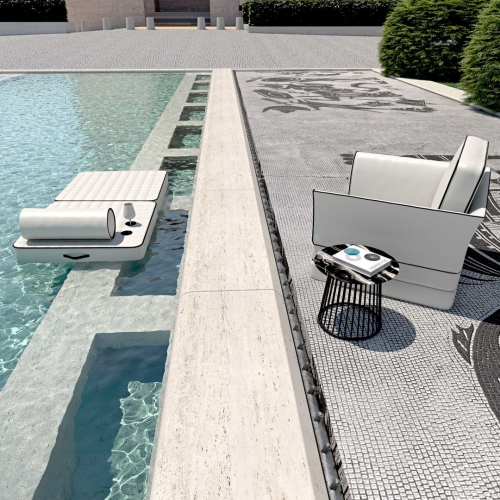 Начиная с культовой линейки моделей Canopo, коллекция Samuele Mazza представляет еще один шаг вперед в плане садовой мебели. Предложение представляет собой линию плавающей мебели, идеально соответствующую стилю культовой серии Canopo. Сценическое присутствие, комфорт и практичность использования роскошных предметов мебели как в воде, так и на суше, изготовленных из экологически чистых и стойких материалов. Плавающий лежак класса люкс обеспечит роскошный отдых в бассейне или на море, также идеально подходит для релаксации в лаунж зоне возле бассейна, на пляже или яхте. В разложенном виде - эксклюзивный, удобный и безопасный плавающий матрас-лежак, в сложенном виде - элегантный предмет мебели, который можно адаптировать как для внутреннего, так и для внешнего пространства.