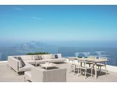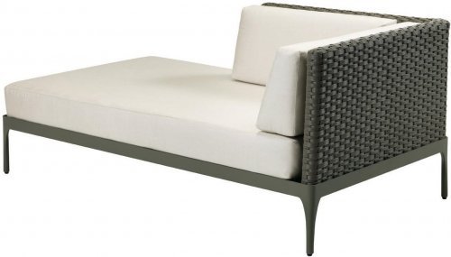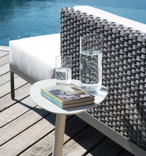Используемые материалы - это алюминий и волокно LightWick, разработанное компанией Ethimo, с выдающимся неравномерным переплетением для динамического растягивающего эффекта. Волокно Lightwick добавляет дополнительный штрих естественного комфорта.