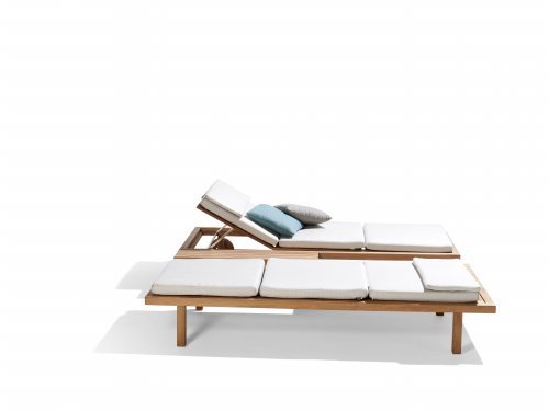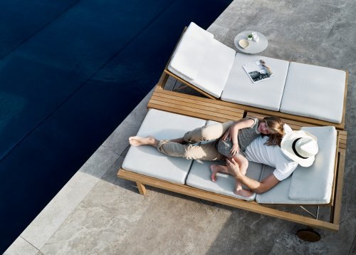 Коллекция Vis à Vis придает деревянной уличной мебели новое измерение. Тик - любимый наружный материал именитых дизайнеров. Он натуральный, мягкий на ощупь и чрезвычайно прочный. Несомненно, материал на 100% защищен от атмосферных воздействий. Когда Piergiorgio Cazzaniga начал разрабатывать коллекцию, он думал о месте, где люди могли бы находиться на улице и общаться друг с другом в полном комфорте. В результате получился шезлонг королевских размеров со встроенным боковым столиком, спроектированным таким образом, чтобы два шезлонга вписывались друг в друга, создавая большой «остров общения». Благодаря гибкому основанию конструкции Вы можете лежать как рядом, так и друг напротив друга.