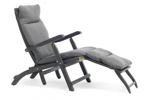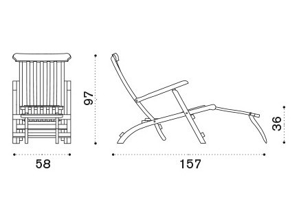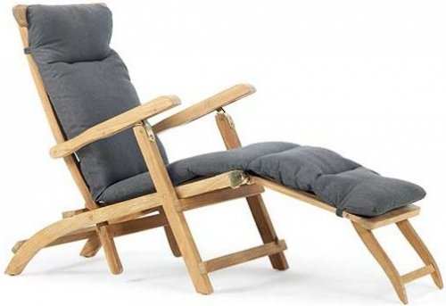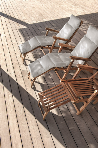 Складные шезлонги коллекции Cruise с регулируемой спинкой из натурального тика и деталями из латуни имеют неповторимый шарм старины.
