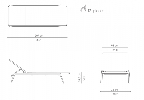 - Шезлонг можно штабелировать до 12 штук в высоту, что делает его идеальным для сектора гостеприимства.