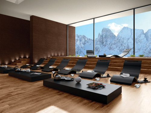 Текстура шезлонга выполнена с эффектом натурального камня, благодаря которому Вы можете использовать шезлонг без полотенца из-за улучшенной микроциркуляции воздуха между телом и поверхностью.