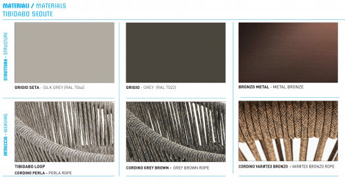 Tibidabo - коллекция садовой мебели с переплетением из синтетического волокна в ручном исполнении и рамой из окрашенного алюминия. Такая простая и в то же время элегантная мебель может украсить террасы ресторанов, отелей или вашего дома. Идеально подходит для внутреннего и наружного применения.