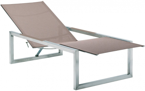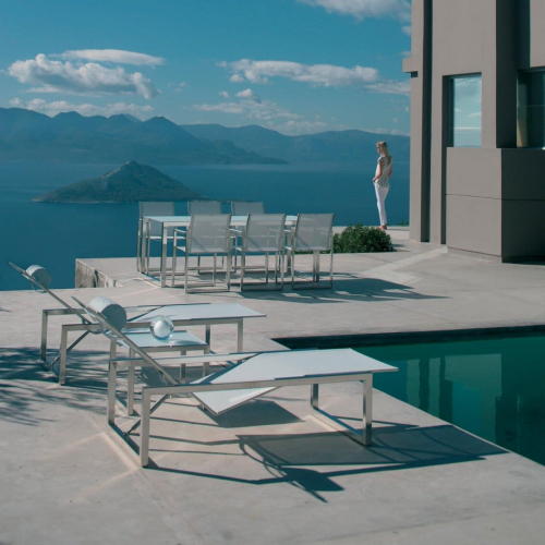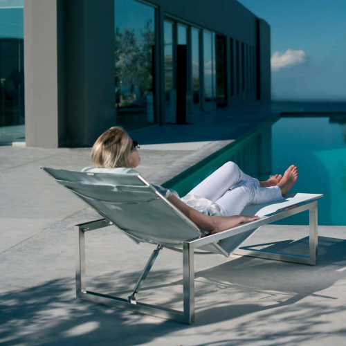 Чистые линии, шик и элегантность - шезлонг Ninix поражает своим разносторонним дизайном. Кажется, что поверхность шезлонга почти плавает на раме в геометрическом стиле - отличный визуальный эффект!