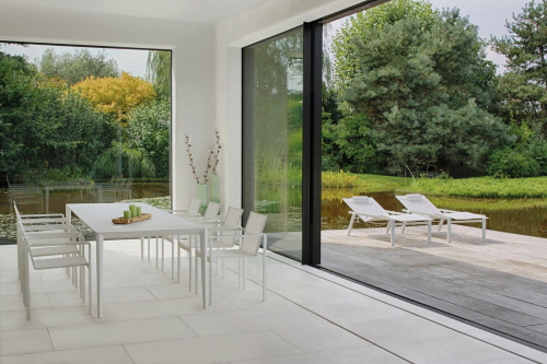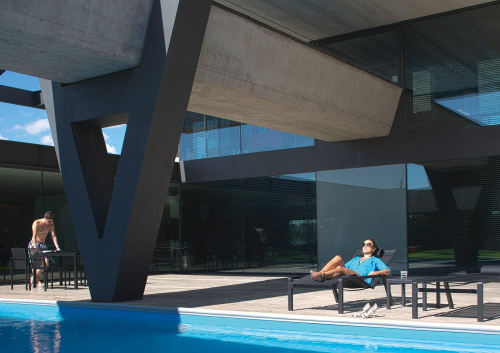 Шезлонг Alura сочетает в себе роскошный отдых и современный бельгийский стиль. Он отличается стильным металлическим каркасом и акцентом на чистые угловатые линии.