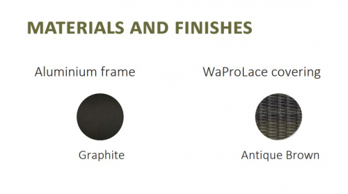 Чистый дизайн, продуманный до мелочей, но никогда не вызывающий крайностей, - главная характеристика коллекции Experience. В изысканном дизайне зауженные ножки всех изделий создают легкий элегантный стиль. Алюминий графитового цвета естественным образом сочетается с тканым вручную синтетическим волокном WaProLace® античного коричневого цвета, создавая элегантную хроматическую композицию.