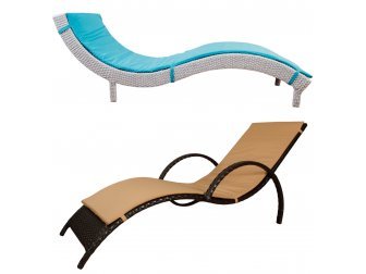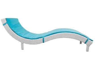 Лежак Tama выполнен из искусственного ротанга белого цвета в форме волны.