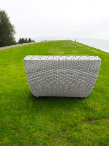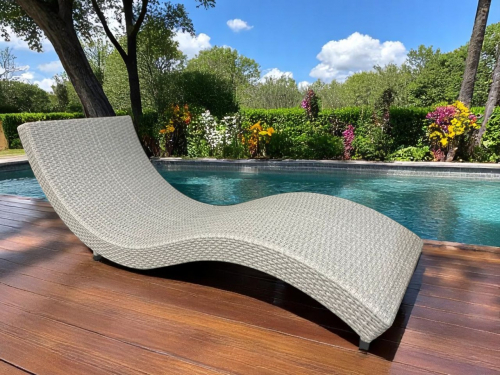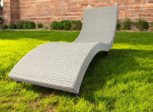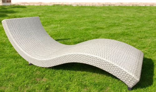 Лежак Tama выполнен из искусственного ротанга белого цвета в форме волны.