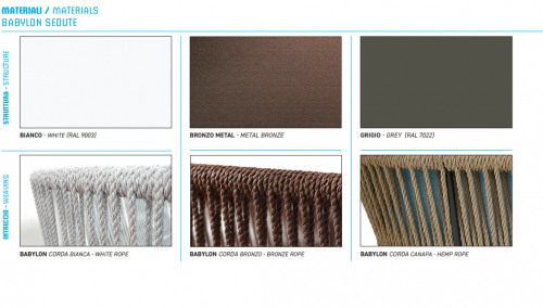 Плетеный шезлонг с подушками и колесами для простого перемещения. Профиль спинки Babylon слегка согнут, что напоминает силуэт крыльев чайки. Мягкие подушки сиденья и спинки делают эту мебель от Varaschin идеально подходящей для теплых летних дней как внутри, так и за пределами дома. Babylon - коллекция мебели из лакированного алюминия, украшенной плетением из синтетического волокна ПВХ. Ручной дизайн изделий идеально подходит для стильного украшения террасы, комнаты или гостиной.