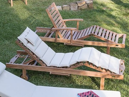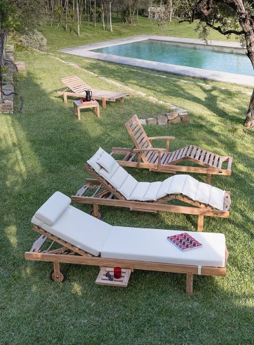 Матрас для шезлонга из массива тика Classica Caracas. Шезлонг имеет двойную складную систему. Он идеально подходит для отдыха на открытом воздухе и наслаждения у бассейна или океана. Вы также можете разместить шезлонг рядом в саду.