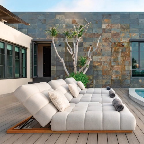 Мягкий лежак Blow сочетает в себе современный дизайн и исключительный комфорт. Прочная рама из алюминия и тика обеспечивает изысканный внешний вид и долговечность, а обивка из быстросохнущего пеноматериала и высококачественной олефиновой ткани обеспечивает максимальный комфорт для сидения и отдыха. Идеально подходит для стильных открытых пространств, садов, бассейнов и оздоровительных центров.