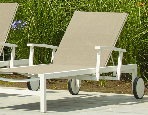 Шезлонг Anabel можно использовать с подлокотниками или без них. Когда в нем нет необходимости, подлокотник можно легко сложить сеткой к каркасу. Этот лежак складывается и легко перемещается благодаря колесам. Регулировка высоты спинки обеспечивает максимальное удобство во время отдыха.