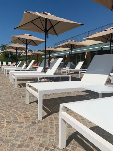Шезлонг GS 927 с окрашенным алюминиевым каркасом и покрытием из текстилена - оба материала устойчивы к атмосферным воздействиям и поэтому идеально подходят для наружного использования. Удобный и современный шезлонг имеет регулируемую по высоте спинку и оснащен удобными колесами для перемещения, он идеально подходит для садов, бассейнов и террас. Легко штабелируется для оптимального хранения в те моменты, когда не используется.