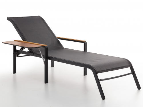 Металлический лежак с выдвижным столиком Yalikavak, в котором сочетаются комфорт, долговечность и элегантность. Украсит зону возле бассейна, террасу, лаунж зону и любые другие открытые пространства.