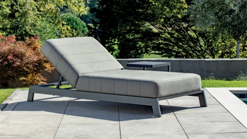 Минималистичный дизайн, обеспечивающий максимальный комфорт: алюминиевый каркас и быстросохнущий поролон (fast dry foam) с покрытием из водонепроницаемой ткани Sunbrella, которая устойчива к плесени, пятнам и ультрафиолетовым лучам. Металлический лежак Bite - садовая мебель высокого уровня со своим собственным уникальным стилем. Он отлично дополнит отдых у бассейна или в саду, а регулируемая спинка поможет найти наиболее удобное положение для максимального расслабления.