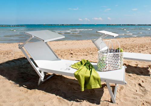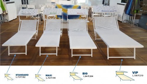 Шезлонг 501 характеризуется своей необыкновенной легкостью и отличным соотношением качество/цена. Алюминиевый профиль (перекладина), соединяющий две ножки, толщиной 18 мм, делает шезлонг легким и удобным для использования на пляже, а также на площадках возле бассейна и в садах. От модели 501 (Relax) отличается тем, что регулировка спинки осуществляется в 2 положениях.