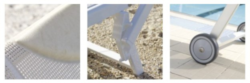 Материалы, используемые при производстве шезлонгов Magnani, качественные, прочные, износостойкие, что гарантирует сохранность изделий на протяжении 10 лет эксплуатации. Возможность реализовать каркас с цветным анодированием или окрашенным цветами RAL вместе с широким выбором тканей делает лежак идеальным и универсальным изделием, которое можно согласовать в гармонии даже с уже имеющимся стилем и декором для оздоровительных центров, отелей, бассейнов, пляжей.
