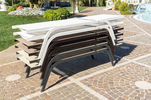 Материалы, используемые при производстве шезлонгов Magnani, прочные, качественные, износостойкие, что гарантирует сохранность изделий на протяжении 10 лет эксплуатации. Возможность реализовать окрашенный цветами RAL каркас вместе с широким выбором тканей делает лежак идеальным и универсальным изделием, которое можно согласовать в гармонии даже с уже имеющимся стилем и декором открытых пространств.