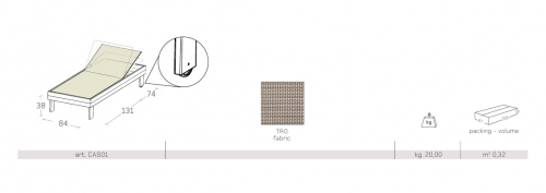 Профессиональный шезлонг-лежак Castore имеет регулируемую спинку, которую можно установить в одном из четырех положений, что обеспечивает комфорт. Спинка и сиденье из текстилена не боится воды и солнечных лучей, а также принимает форму тела и делает удобным даже длительное пребывание на свежем воздухе. Оригинальный шезлонг-лежак способный придать большую уникальность любому проекту – частному или контрактному.