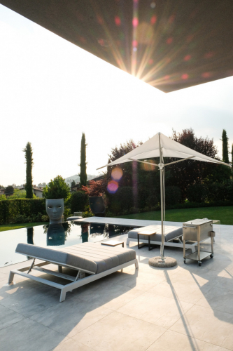 Минималистичный дизайн, обеспечивающий максимальный комфорт: алюминиевый каркас и быстросохнущий поролон (fast dry foam) с покрытием из водонепроницаемой ткани Sunbrella, которая устойчива к плесени, пятнам и ультрафиолетовым лучам. Металлический лежак Bite - садовая мебель высокого уровня со своим собственным уникальным стилем. Он отлично дополнит отдых у бассейна или в саду, а регулируемая спинка поможет найти наиболее удобное положение для максимального расслабления.