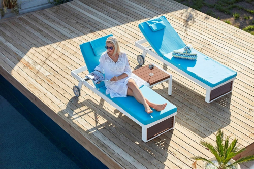 Чрезвычайно прочный и долговечный лежак Alezia оснащен регулируемой спинкой. Его фундаментальные линии и их ширина подчеркивают комфорт и делают его подходящим для оздоровительных центров, спа-салонов, а также крытых и открытых бассейнов. Эстетика, неподвластная времени, никогда не банальная, упрочненная алюминиевой структурой, которая контрастирует с открытой конструкцией панелей из африканского ироко, обеспечивая полноценный поток воздуха, который дает всей конструкции практичность, возможность дышать и ощущение эстетической легкости.