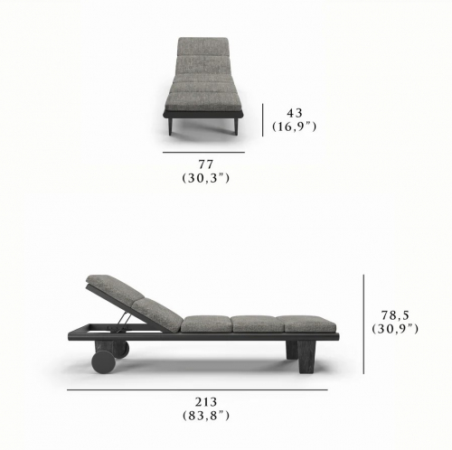 Коллекция Sestri вдохновлена техническим миром судостроения: каждое решение направлено на максимальную функциональность и упрощённую эстетику. Шезлонг-лежак Sestri сочетает продуманную функциональность и сдержанный дизайн: алюминиевый каркас с порошковым покрытием обеспечивает коррозионную стойкость, а теплая фактура ножек из тика уравновешивает техническую ясность алюминиевой рамы, создавая гармоничный образ. Спинка регулируется в несколько положений, что позволяет быстро переключаться между загаром, чтением и отдыхом.