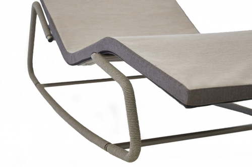 Качающийся шезлонг-лежак Wave Dondol отличается структурой из лакированной стали, отделанной роупом. Конструкция с натянутыми поперечными металлическими трубками позволяет лежаку раскачиваться и становится важным и необходимым элементом при индивидуальной настройке основания. Матрас обит тканью, подчеркивающей элегантную и извилистую линию шезлонга. Максимальный комфорт достигается за счет использования мягкого наполнителя, который обеспечивает комфорт и функциональность. Шезлонг Wave Dondol - современный и элегантный элемент релаксации на открытом воздухе.