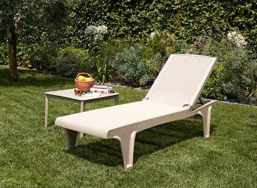 Каркас, выполненный полностью из термопластичного материала, регулируемая спинка и быстрозаменяемое покрытие демонстрируют практичность и удобство этого шезлонга, гарантируя прочность.