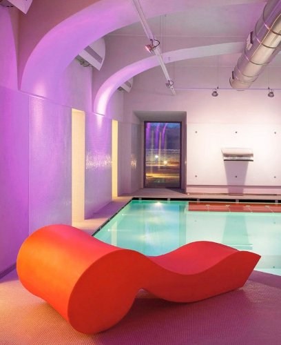 Изогнутая форма шезлонга Rococò делает его не только интересным предметом дизайна, но и удобным и комфортным. Колеса, расположенные под шезлонгом, позволяют легко перемещаться. Это взгляд на декоративную деталь, которая часто ассоциируется с антикварной мебелью, переводимой с иронией через плохой материал, и это становится привлекательным шезлонгом. Линии шезлонга делают его особенно привлекательным и приветливым, а большие размеры позволяют Rococò обеспечивать частные и общественные пространства элегантностью и экстравагантностью.