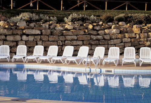 Дополнительно к шезлонгам можно приобрести козырек, защищающий от солнца и столики для шезлонгов.