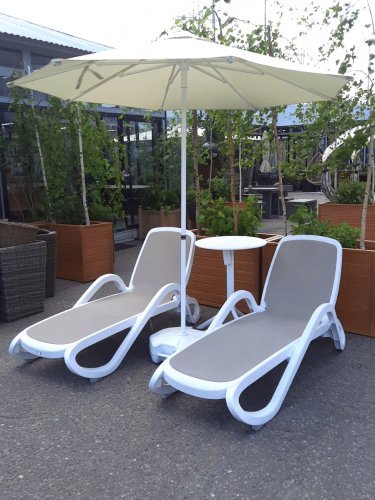 Дополнительно к шезлонгу можно приобрести солнцезащитный козырек, матрас и столики для шезлонгов. А также ремкомплект для увеличения срока службы изделия.