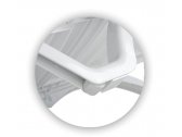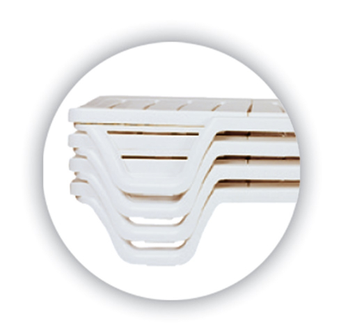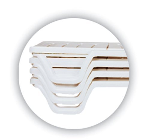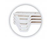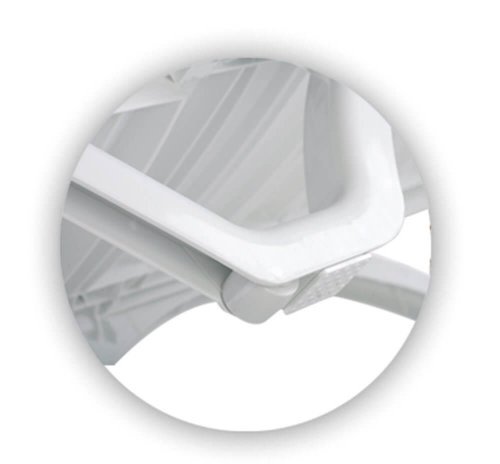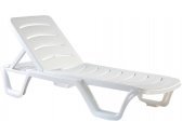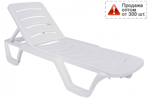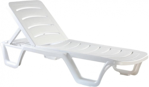 Наклон широкой и удобной спинки регулируется в 5 положениях, позволяя принять наиболее комфортную позицию во время отдыха. Для транспортировки по пляжной зоне в ножках установлены два небольших колеса. Шезлонг не занимает много места при хранении, т.к. штабелируется.