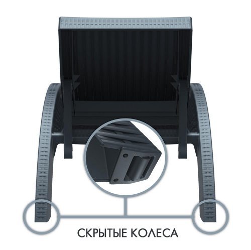 Шезлонг идеально подойдет для открытых площадок возле бассейна или на пляже, его легко передвигать благодаря скрытым колесам, установленным в ножках. Наклон широкой и удобной спинки регулируется в 5 положениях, позволяя принять наиболее комфортную позицию во время отдыха и обеспечивает полное расслабление.