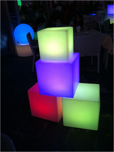 Хотите оригинально решить вопрос с освещением? Тогда выбирайте светящийся куб. Сияние может быть равномерно одноцветным либо играющим цветным, переливающимся красным, зеленым и голубым. Эффект потрясающий, а пространство вокруг становится загадочным и романтичным.