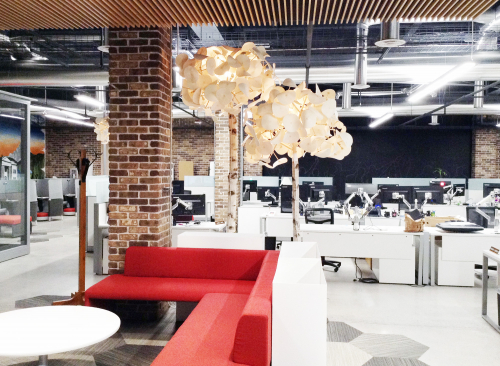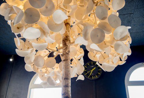Leaf Lamp Tree M - мягкий и естественный светильник, создающий визуальную и акустическую атмосферу. Это светильник размером с дерево для общественных помещений. Ветви образуют великолепную крону листвы диаметром 2300 мм. Ствол и ветви изготовлены из шведской березы. Светильник опирается на надежную базу, которая может быть привинчена к полу либо дополнена металлической плитой, что делает светильник свободностоящим. Leaf Lamp Tree M имеет звукопоглощающие свойства класса A - листва образует мягкий лабиринт из 14 м² шерстяного войлока. Он мягко рассеивает свет, создавая успокаивающую атмосферу, и радикально улучшает восприятие речи в непосредственной близости.