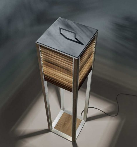 Светильники Ginger, доступные в настольном, напольном или настенном исполнении, имеют пластинки, которые рассеивают свет изнутри подобно солнцу через шторку.