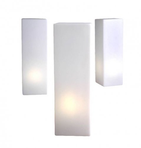 Простая и современная форма, возвышенный нежный и чувственный свет. Светильник Io в форме параллелепипеда, выполненный из белого полиэтилена, создает лаунж атмосферу в гостиной или в комнате.