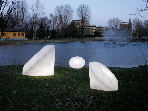 Bijoux - это напольный светильник, напоминающий форму бриллианта: когда он включен, его тусклый свет превращает Bijoux в настоящий бриллиант, и он способен сделать интерьеры и открытые пространства более утонченными и элегантными. Bijoux изготовлен из полиэтилена по технологии ротационного формования: он доступен во многих оттенках.