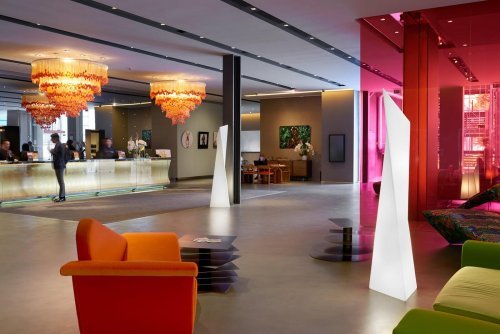 Manhattan - это напольный светильник, характеризующийся формой неправильной призмы: эта его особенность позволила SLIDE получить премию l’HA+D Award в 2012 году в категории Освещение номеров (награда читателей за инновационный продукт). Manhattan изготовлен из белого полиэтилена, и его сильная индивидуальность обусловлена главным образом магической атмосферой, создаваемой в окружающей среде, в зависимости от угла, в котором он находится.