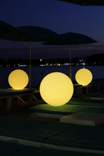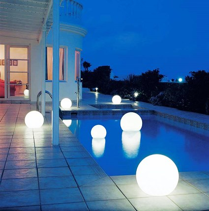 Благодаря герметичному корпусу и особенностям конструкции, светильники Globe могут устойчиво держаться на поверхности воды, что позволило применять их в качестве декоративного освещения бассейнов или водоемов.