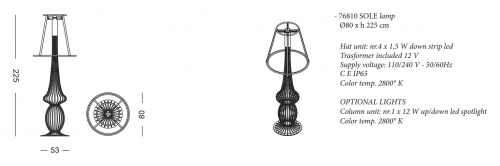 В коллекции Sole кованое железо превращается в беседки, лампы и величественные вазы. Эта коллекция создана с использованием железных прутьев, которые принимают извилистые формы благодаря мастерству мастеров DFN. Светильник Sole, полностью сделанный из кованого железа, вдохновлен сказочными образами, которые не останутся незамеченными. Элемент освещения добавляет яркости, которая сочетается с твердым железом, создавая беспрецедентный драматический вид. Концепция total look остается фундаментальной особенностью этой коллекции, которая переосмысливает железо, превращая его во что-то роскошное и элегантное. В то же время все элементы были обработаны, чтобы гарантировать длительное использование в наружных условиях. Часто используется в сочетании с элементами из коллекций Sirio и Canopo.
