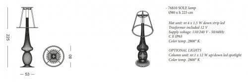 Абажур изготовлен из синтетического волокна VIRO® ручного плетения. Торшер сертифицирован для наружного применения. Синтетическое волокно VIRO® ручной работы разработано для длительного использования на открытом воздухе и, следовательно, устойчиво к любым атмосферным воздействиям. Обладает устойчивостью к перепадам температур (от -70°C до +80°C), ультрафиолетовым лучам, не теряет цвет, влагостойкостью, устойчивость к соли и хлору, плесени. Это нетоксичный экологичный материал (на 100% перерабатываемый), по ощущению как натуральный материал. Посмотреть палитру материалов Samuele Mazza.