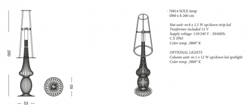 Абажур изготовлен из синтетического волокна VIRO® ручного плетения. Торшер сертифицирован для наружного применения. Синтетическое волокно VIRO® ручной работы разработано для длительного использования на открытом воздухе и, следовательно, устойчиво к любым атмосферным воздействиям. Обладает устойчивостью к перепадам температур (от -70°C до +80°C), ультрафиолетовым лучам, не теряет цвет, влагостойкостью, устойчивость к соли и хлору, плесени. Это нетоксичный экологичный материал (на 100% перерабатываемый), по ощущению как натуральный материал. Посмотреть палитру материалов Samuele Mazza.