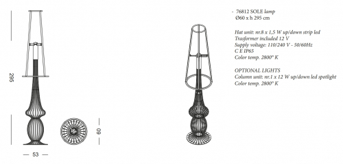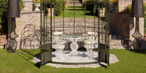 В коллекции Sole кованое железо превращается в беседки, лампы и величественные вазы. Эта коллекция создана с использованием железных прутьев, которые принимают извилистые формы благодаря мастерству мастеров DFN. Светильник Sole, полностью сделанный из кованого железа, вдохновлен сказочными образами, которые не останутся незамеченными. Элемент освещения добавляет яркости, которая сочетается с твердым железом, создавая беспрецедентный драматический вид. Концепция total look остается фундаментальной особенностью этой коллекции, которая переосмысливает железо, превращая его во что-то роскошное и элегантное. В то же время все элементы были обработаны, чтобы гарантировать длительное использование в наружных условиях. Часто используется в сочетании с элементами из коллекций Sirio и Canopo.