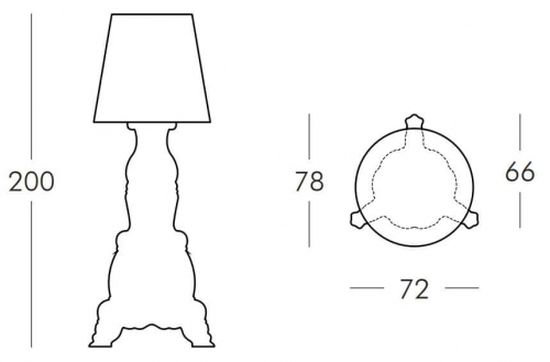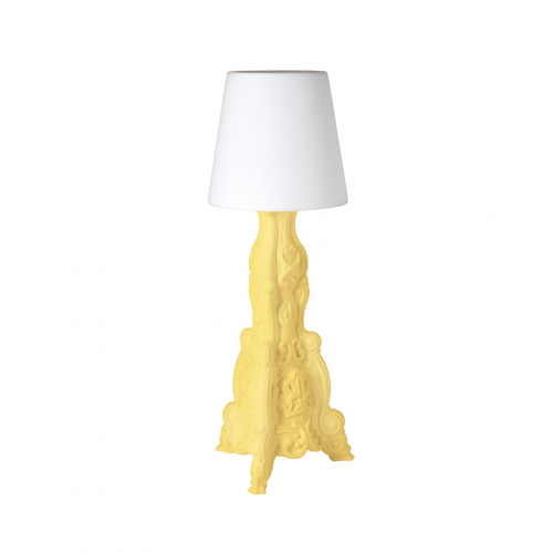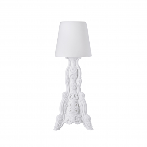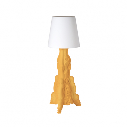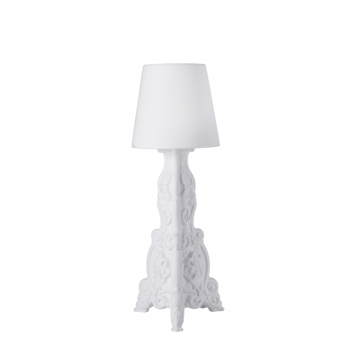 Итальянская классика барокко переосмыслена в ироничном и популярном стилях: напольный светильник Madame of Love напоминает ту же форму, что и abat-jour, но он по размерам больше классического светильника и имеет современный стиль. Madame of Love смешивает богатую основу, типичную для стиля барокко, с белым абажуром, обогащенным драгоценной текстурой. Светильник идеально подходит для сферы Contract или домашней обстановки.