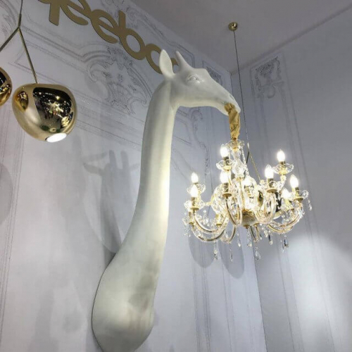 Giraffe In Love - это новый продукт, созданный в результате сотрудничества между художником и дизайнером Marcantonio и Qeeboo. Это мечтательный жираф с классической люстрой в стиле канделябра Mariateresa. Giraffe In Love символизирует иронию и легкость: жираф влюблен, но она еще не знает этого, потому что ее сердце далеко от ее головы, и она живет любовью беззаботно. Светильник доступен в напольной и настенной версии, позволяющей привнести оригинальную гармонию в жилое пространство.